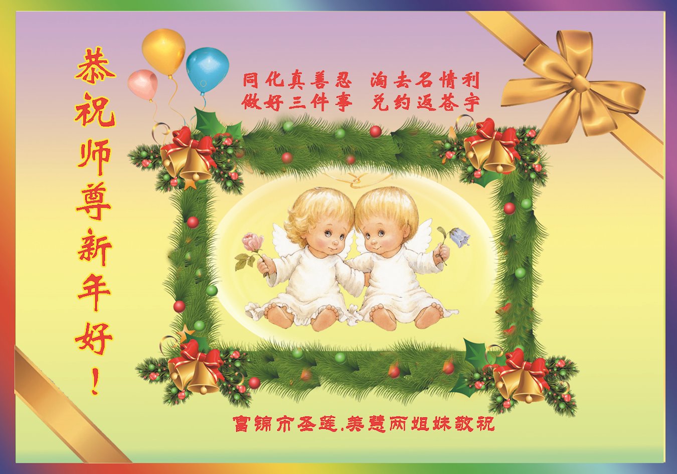 一人得法全家益 佛光普照世人喜 祛病健身显神力 做好三事修自己 有缘亲人都得度 满载众生返天宇 黑龙江省佳木斯市富锦市两姐妹大法弟子恭祝慈悲的恩师新年快乐!