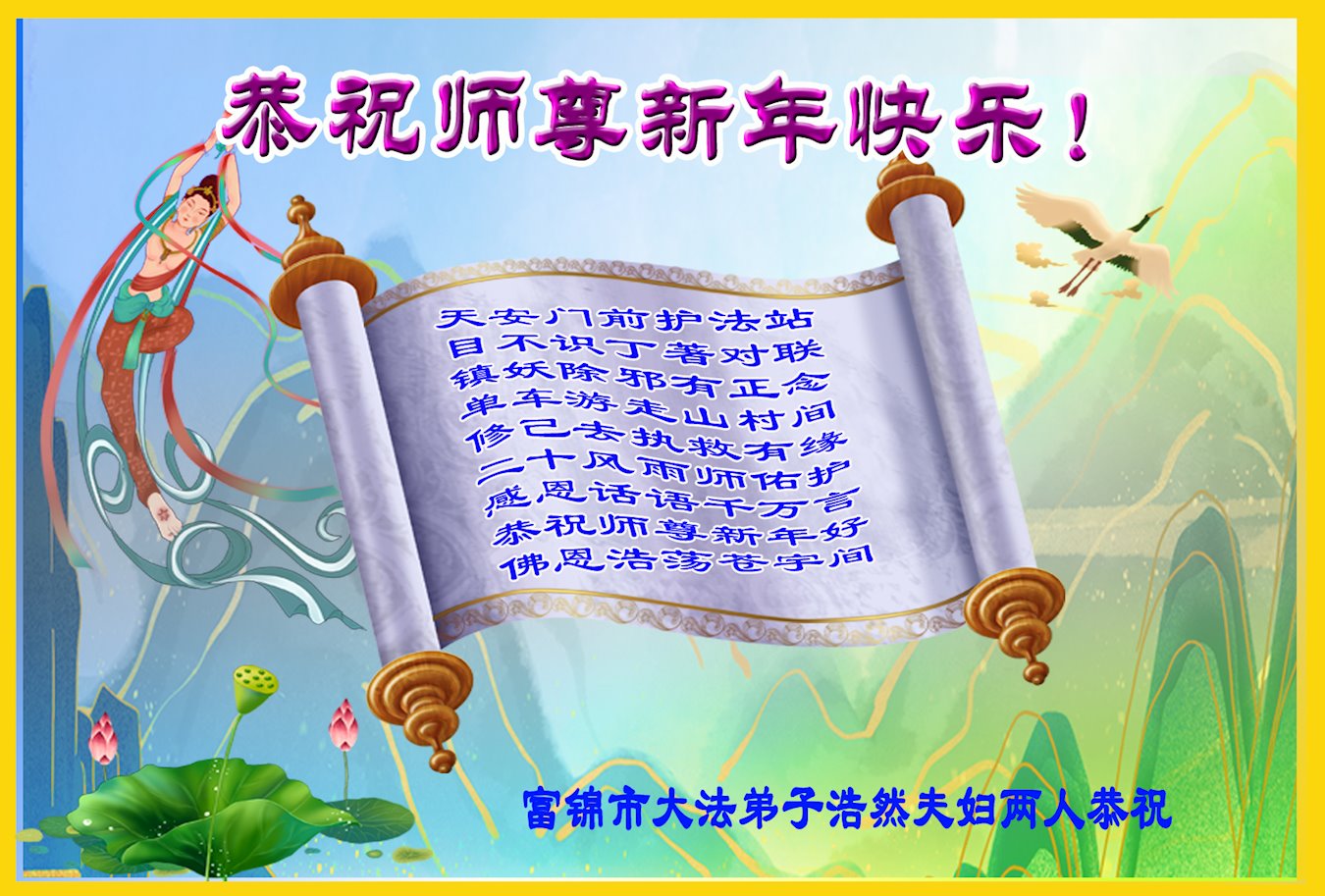 恭祝慈悲伟大的师尊新年好!祝您新年快乐! 黑龙江省佳木斯市富锦市一夫妇大法弟子恭祝师尊新年好!