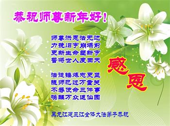 千言万语也表达不了对师尊的感恩,感谢恩师把我们从地狱中捞起洗净,感谢恩师为我们的承担与付出,我们只有精進实修,助师正法,做好三件事,以报师恩。愿师父多一份欣慰,少一份操劳。 恭祝师父新年快乐! 黑龙江省佳木斯市汤原一学法小组全体大法弟子,跪拜敬上! 黑龙江省抚远市大法弟子恭祝师尊新年快乐!