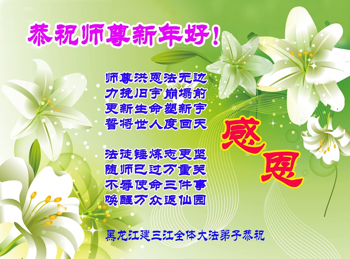 谢谢师父的慈悲救度!师父您辛苦了! 黑龙江省佳木斯市建三江全体大法弟子恭祝慈悲的师尊新年快乐!