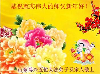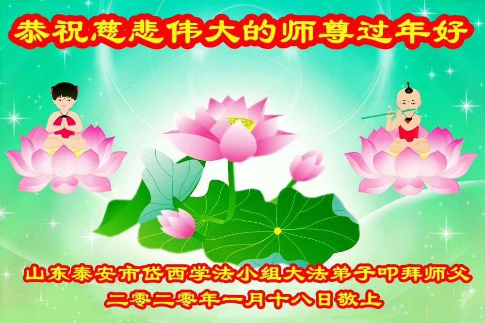 【明慧网二零二零年一月二十三日】 山东省烟台市三个学法小组全体大法弟子向慈悲伟大的师父拜年!师父过年好!