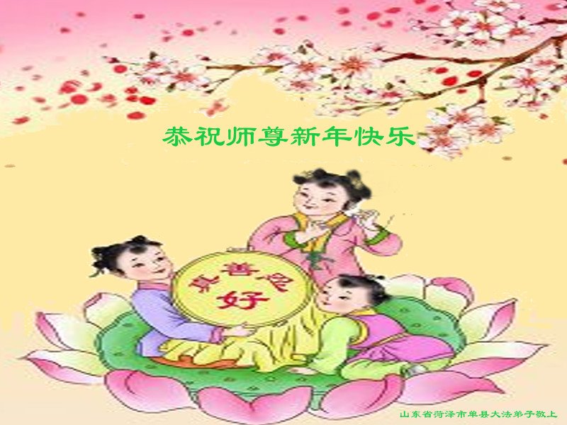 山东省菏泽市单县大法弟子给师尊拜年!恭祝师尊新年快乐! 山东省烟台市蓬莱市一学法小组大法弟子恭祝师尊新年好!
