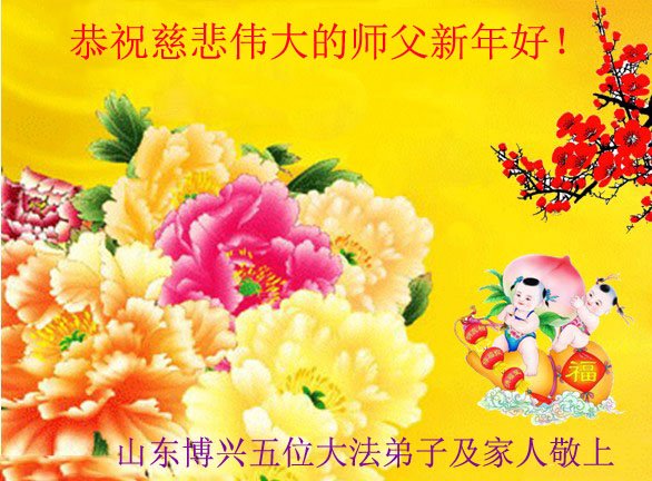 山东博兴五位大法弟子及家人恭祝慈悲伟大的师父新年好!