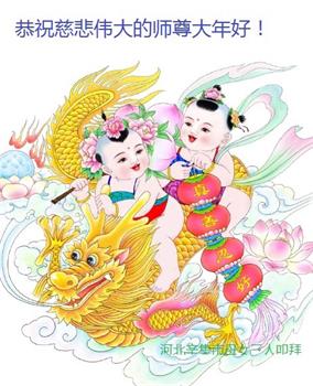 师父日日夜夜为我们操劳,时时刻刻看护着我们,保护着我们,把我们从地狱中捞起,在地狱中除名,又把大法传授给我们,五套功法一步到位教给我们,又把我们一身的污垢用大法洗净,把我们领上了修炼成佛助师正法的神圣道路!师父的恩德用尽人类的语言也无法尽述!在这新年佳节之际,我们深深的感谢恩师!给恩师恭恭敬敬的叩头拜大年了! 河北石家庄长安区一学法小组大法弟子恭祝师尊过年好!