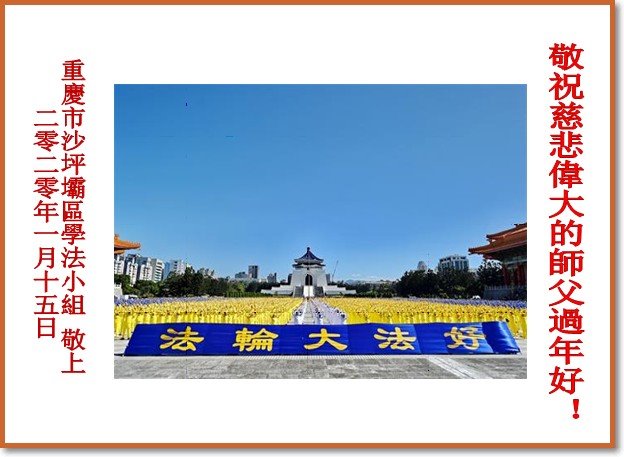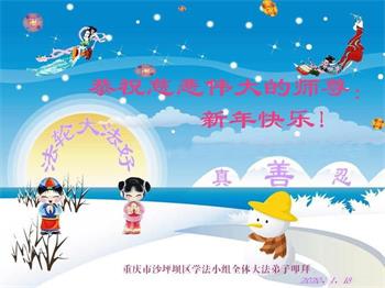 【明慧网二零二零年一月二十三日】 重庆市沙坪坝区学法小组大法弟子恭祝慈悲伟大的师尊新年快乐!