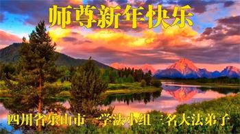 四川省乐山市一学法小组三名大法弟子恭祝慈悲的师父新年快乐!