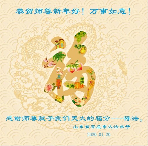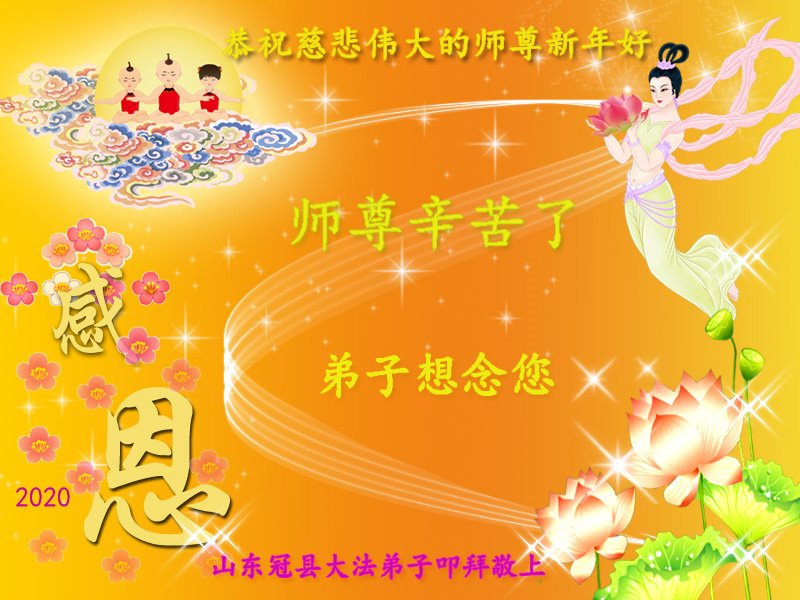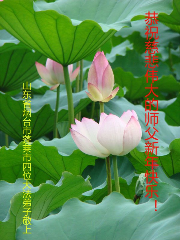 师父您好,您辛苦了!山东淄博市周村区全体大法弟子恭祝慈悲伟大的师尊新年快乐! 山东省威海市一大法弟子恭祝慈悲伟大的师尊过年好!