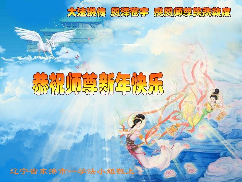 辽宁省丹东市东港市一学法小组大法弟子恭祝师尊新年快乐!