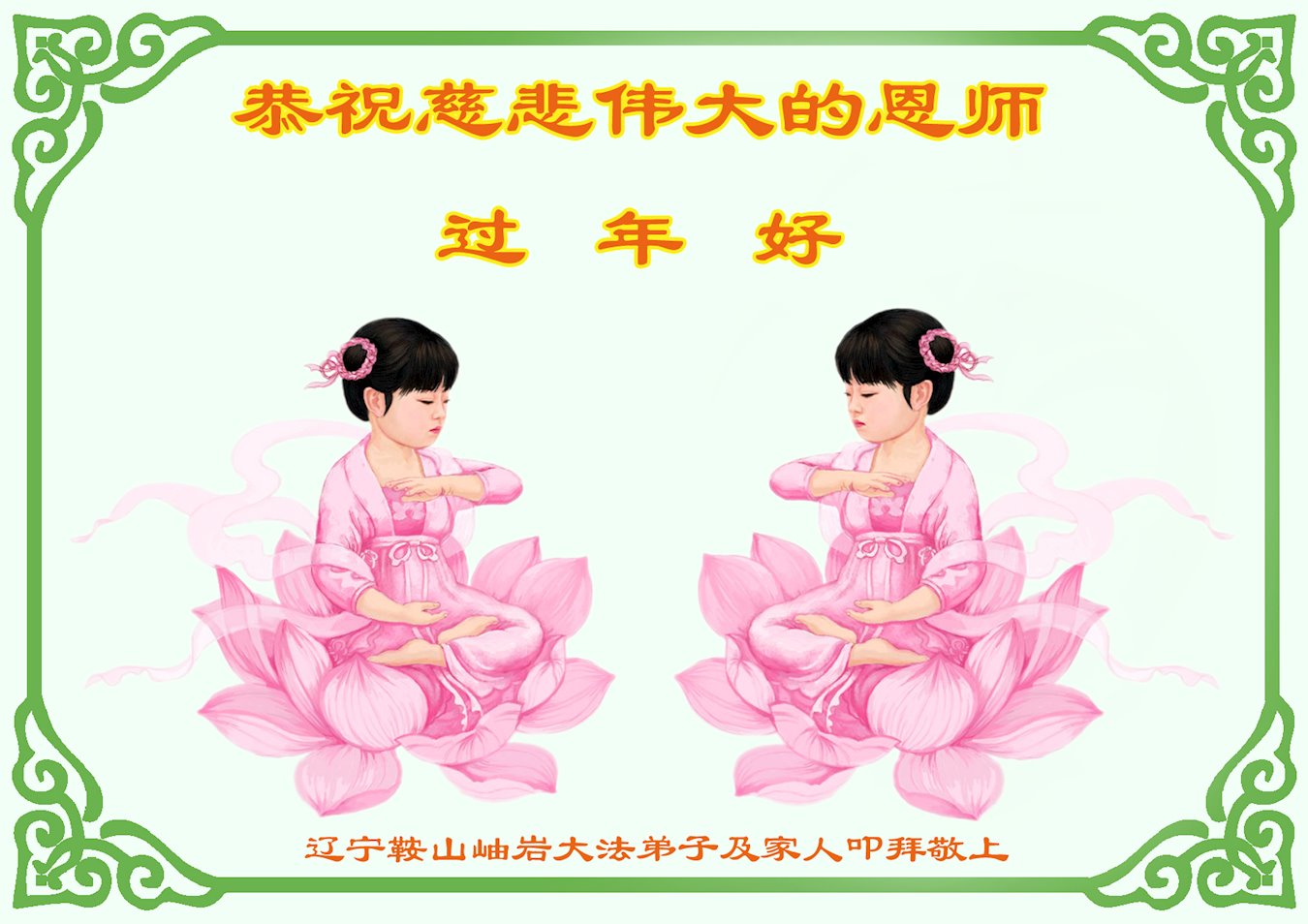 辽宁省营口市鲅鱼圈区两大法弟子及全家恭祝师尊过年好!