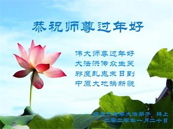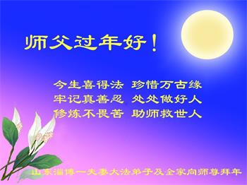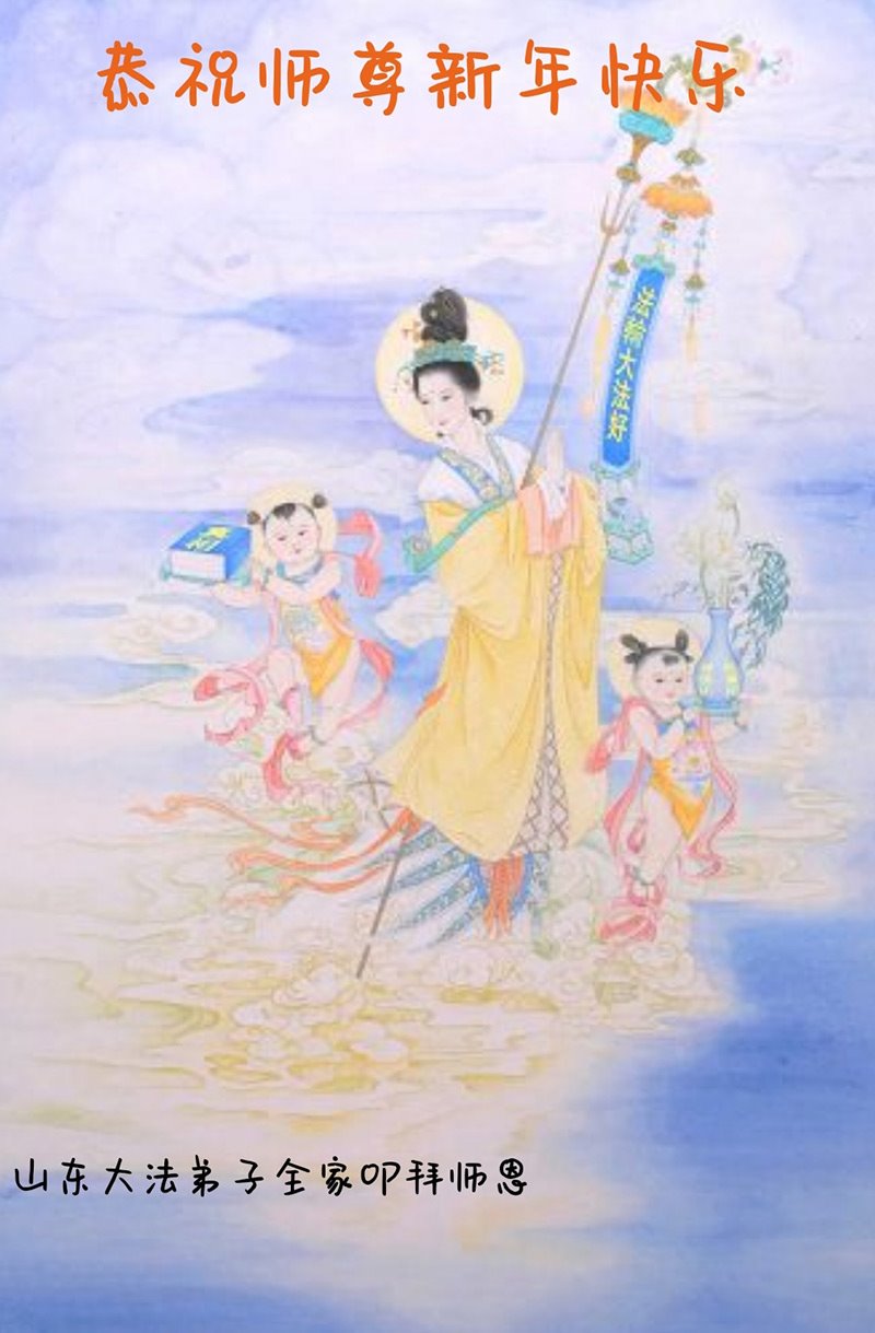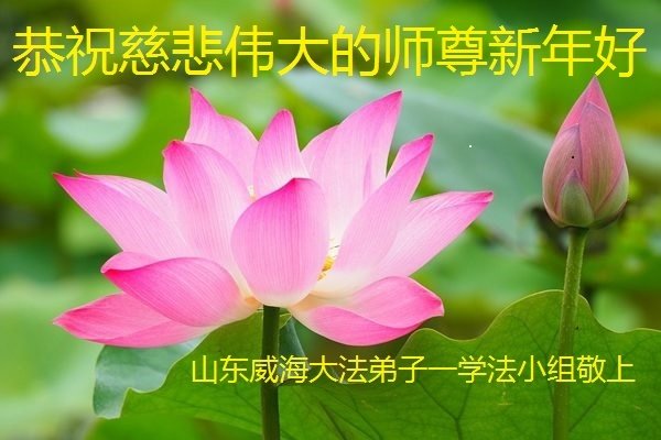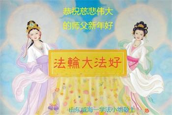 感恩师父把这么伟大的法轮大法洪传世间,感恩师父把弟子从地狱捞起来,净化身心,感恩师父为弟子消业,为弟子的提高苦心安排,感恩师父以巨大的承受为弟子和众生延长时间,感恩师父在弟子迷失、停滞不前时慈悲保护弟子,感恩师父对弟子和家人的慈悲救度!弟子一定做好三件事,多救人,多背法,勤炼功,多发正念。弟子携全家人给伟大的师父拜年!叩谢师父! 山东省威海市荣成市一学法小组大法弟子恭祝伟大师尊新年快乐!