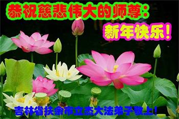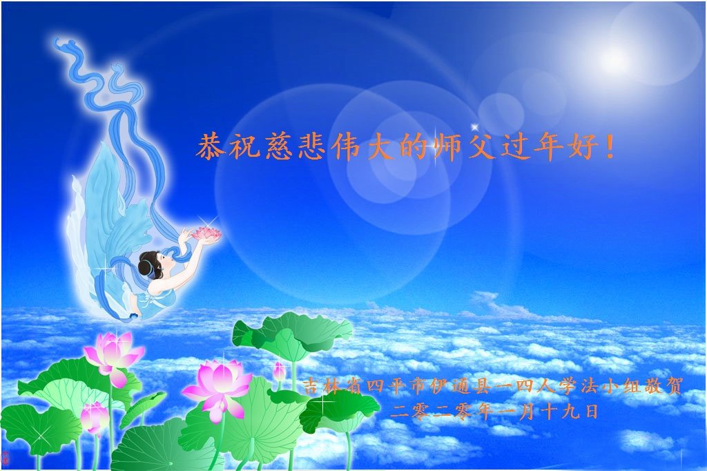 吉林省四平市伊通县一四人学法小组大法弟子恭祝慈悲伟大的师父过年好! 吉林省松原市全家六口大法弟子恭祝师尊新年快乐!