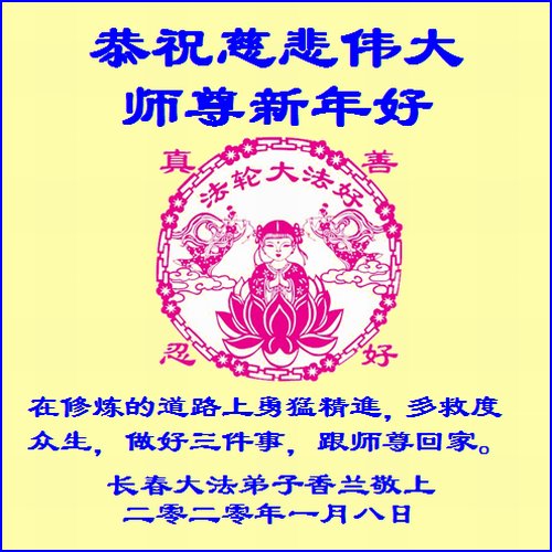 敬祝伟大师尊新年好!勇猛精進再精進! 长春大法弟子敬上 二零二零年一月八日 吉林省长春市大法弟子恭祝师尊新年快乐!