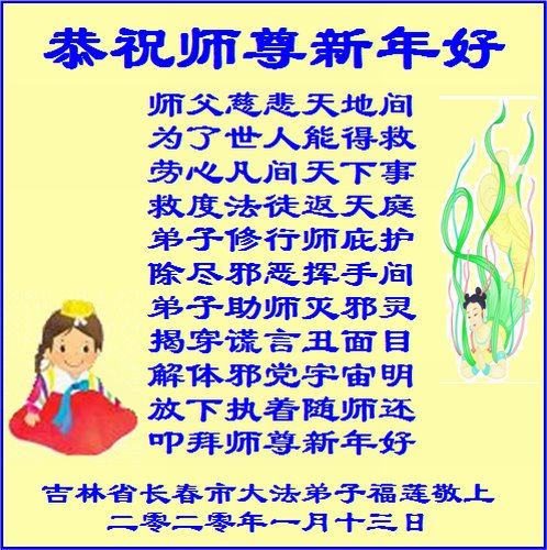 长春大法弟子敬上 二零二零年一月十七日 吉林省长春市大法弟子恭祝师父过年好!