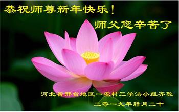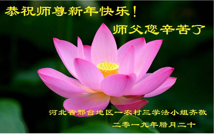 大法弟子叩拜恩师! 河北省邢台地区一农村三学法小组大法弟子齐敬师尊新年快乐!
