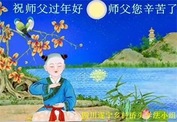弟子叩拜师尊,感恩师尊无时不在的慈悲保护,弟子无一为报,弟子唯有精進实修,多救人,方可报师恩。 四川遂宁乡村桥头学法小组大法弟子恭祝师父过年愉快!