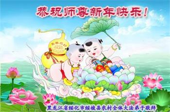 弟子携全家四代人向慈悲伟大的师尊叩谢!感恩师尊的慈悲苦度!师父过年好!祝师父新年快乐! 黑龙江省齐齐哈尔市富裕县农村大法弟子恭祝师父过年好!
