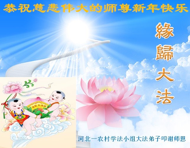 河北一农村学法小组大法弟子恭祝慈悲伟大的师尊新年快乐!叩谢师恩!