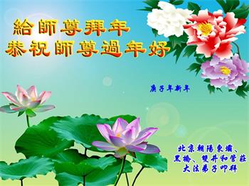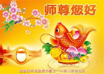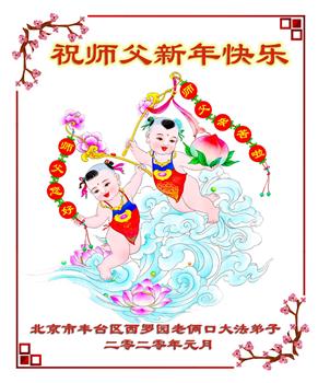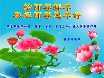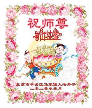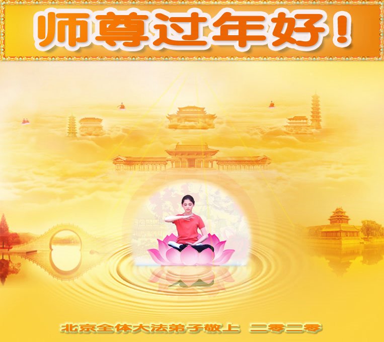 中国新年即将到来,弟子给慈悲伟大的师尊拜年!恭祝师尊过年好!弟子更加想念师尊,并向师尊合十叩拜! 北京朝阳东坝地区、黑桥地区、双井地区和管庄地区大法弟子敬上! 北京大法弟子恭祝师尊过年快乐!