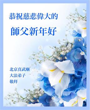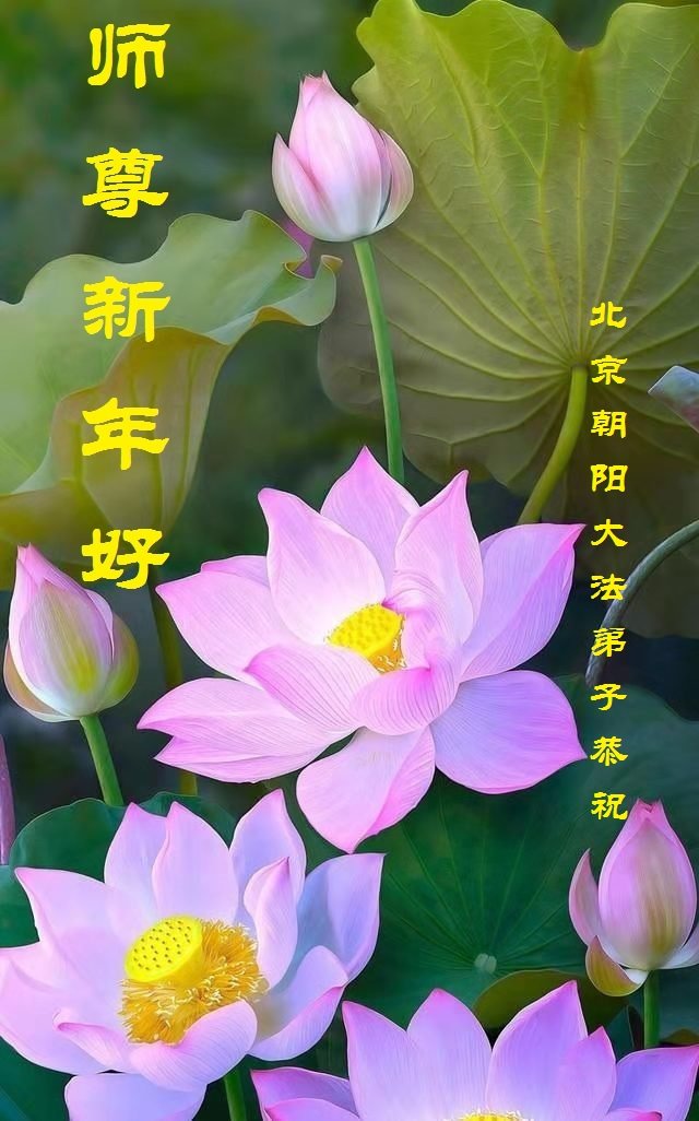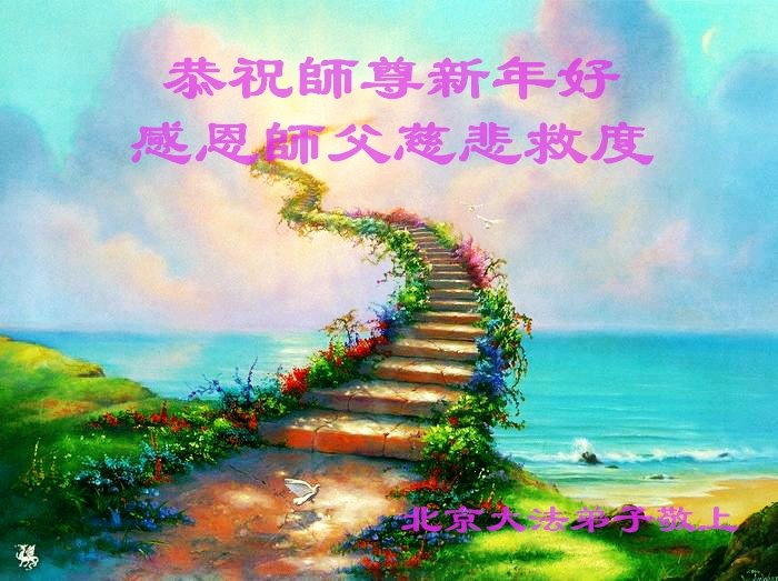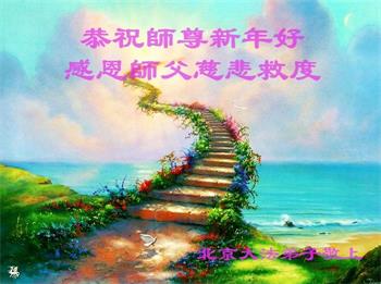 师尊您好!我们是99年“7.20”以前修炼的老弟子。我们深知没有师尊的慈悲保护就没有我们的今天。 北京市朝阳区南沙滩学法小组全体大法弟子祝师尊新年快乐!