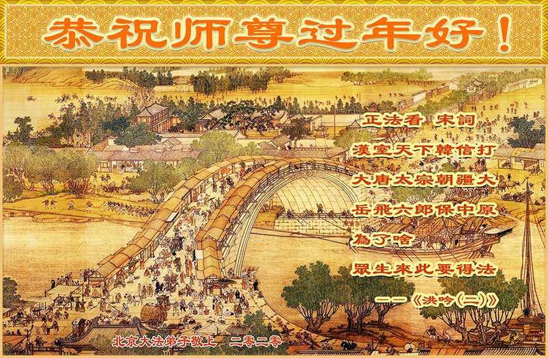 兑现誓约 师尊传法救众生, 弟子助师世间行。 生生世世师尊护, 兑现誓约在今生。 北京全体大法弟子恭祝师尊过年好!