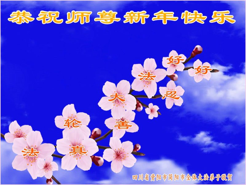恭祝慈悲伟大的师父新年快乐!在新的一年里,我们夫妻要携手更加勇猛精進,按师父的教诲利用各种方式多救人,遇事向内找,做好三件事,了洪愿兑现史前誓约,领着所救众生回天庭。谢谢师父!谢谢师父!谢谢师父! 四川遂宁一夫妻大法弟子叩拜师父救度之恩! 合十 四川省资阳市简阳市全体大法弟子恭祝慈悲伟大的师尊新年快乐!师尊您辛苦了!