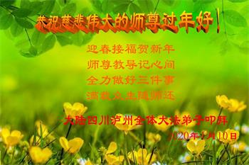 四川省德阳市大法弟子恭祝师尊过年好!愿师父少些操劳,多些欣慰。 四川省广元市旺苍县一大法弟子恭祝师尊过年好!感谢师尊慈悲救度!