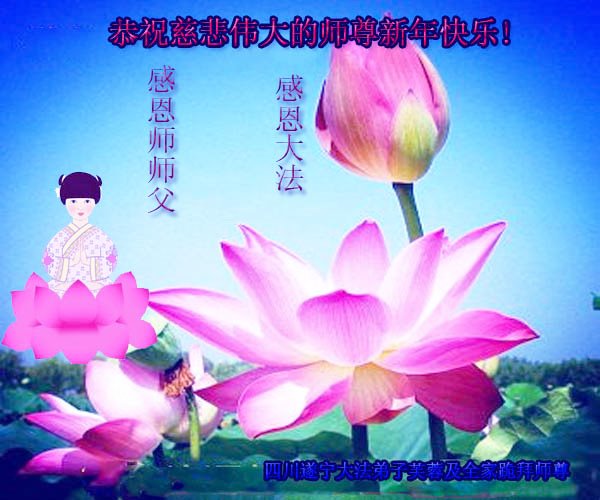 恭祝师尊新年快乐! 师尊您好!感谢您的慈悲救度!感恩法轮佛法恩泽!师尊您辛苦了! 四川省德阳市旌阳区一学法小组全体大法弟子敬祝 |