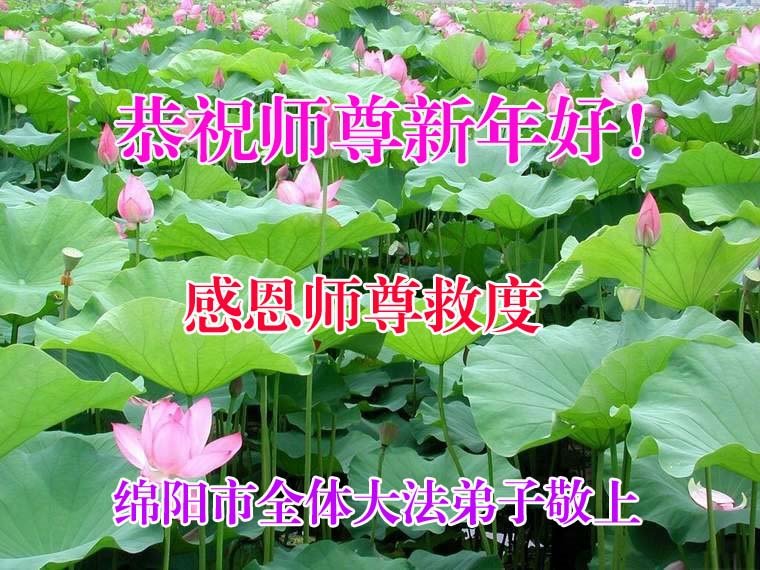 蘸尽苍宇之水写不完师父洪大慈悲!用尽最美的语言颂不尽浩荡师恩!在新的一年里,我们要更加勇猛精進,多学法,学好法,事事都按师父的要求办,决不辜负师父为我们付出的一切,做好三件事,兑现史前誓约,圆满随师父回天国。 我们全家人再一次恭祝师父新年快乐!谢谢师父! 四川省绵阳市全体大法弟子恭祝师尊新年好!