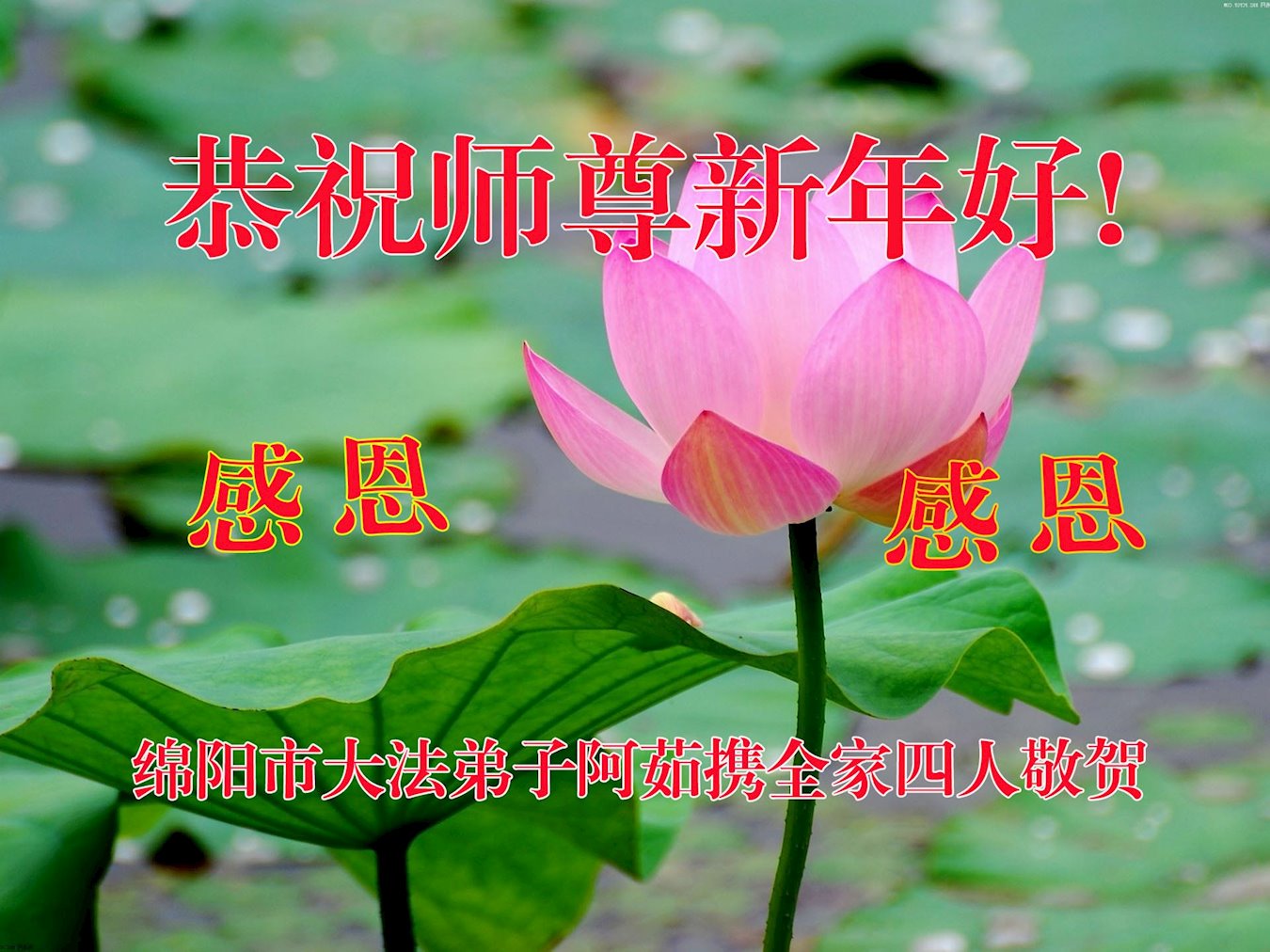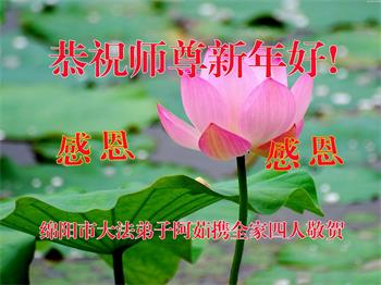 四川省绵阳市一大法弟子携全家恭祝师尊新年好!