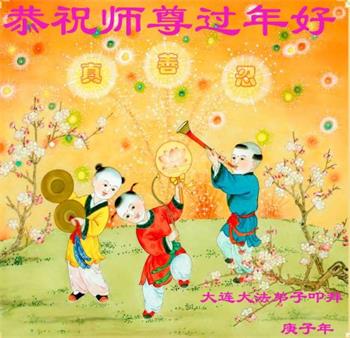 辞旧迎新鼠年到 曙光尽显众生笑 大法祥瑞照寰宇 日月星辰辉光耀 法徒精進救人忙 每人都是宇宙王 修去人心轻舟快 随师正法回天堂 邪恶狂徒下地狱 阴曹地府把债偿 家人子女受牵连 悔恨已晚痛断肠 善恶必报是天理 谎言害人逆天道 了解真相路通天 遍结圣缘苍宇妙 师徒团圆天地明 法正人间就来到 喜迎恩师回故里 遥祝师尊过年好! 辽宁省大连市瓦房店市周边学法小组全体大法弟子恭祝师尊过年好!