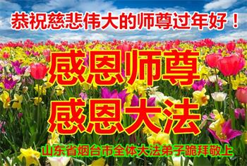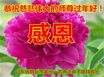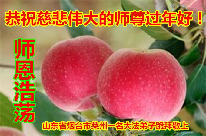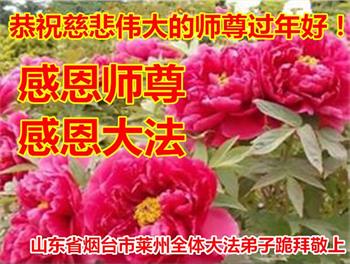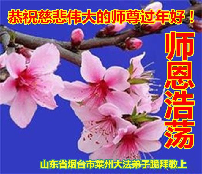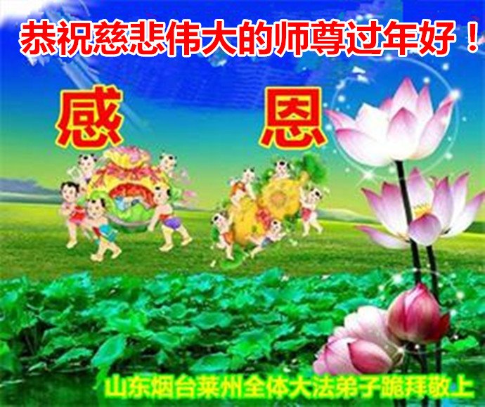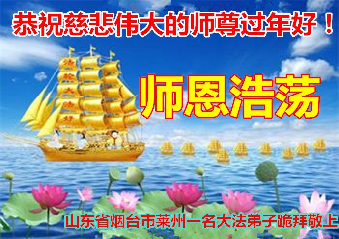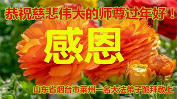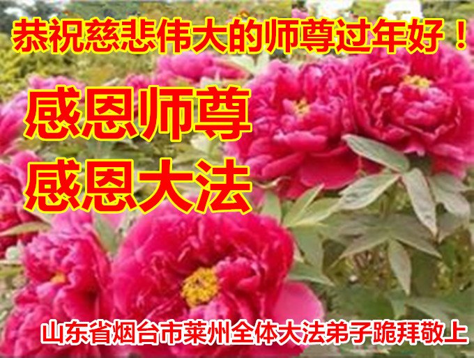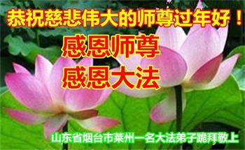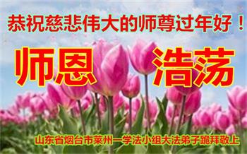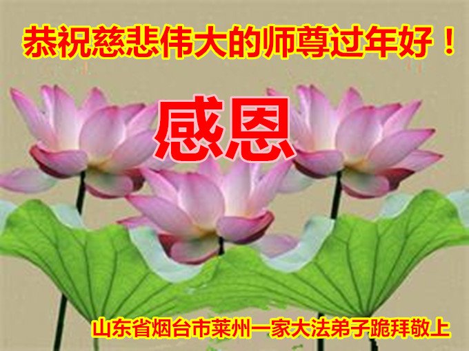 山东省烟台市莱州一家大法弟子恭祝慈悲伟大的师尊过年好! 山东莱芜大法弟子恭祝慈悲的师尊新年快乐!