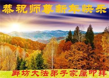 河北廊坊燕郊开发区一家三口大法弟子恭贺伟大慈悲的师父新年快乐!