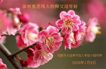 每逢佳节倍思亲,在喜迎二零二零年传统新年之际,我们十分想念慈悲伟大的师尊,感恩师尊的慈悲苦度,用尽千言万语也表达不了我们对师尊的感恩。我们只有精進实修,做好三件事,圆满随师还,叩拜师尊。 2020年1月 13日 四川省成都市郫县大法弟子恭祝慈悲伟大的师尊新年快乐!