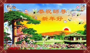 尊敬的恩师新年好!弟子携家人给恩师拜年!弟子及家人恭祝师父新年好!盼望师尊回中国! 四川省成都市龙泉驿区一大法弟子恭祝师尊新年快乐!