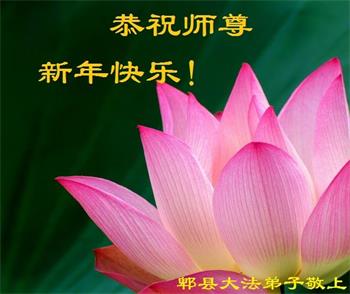 恭祝慈悲伟大的师尊:新年好!新年快乐! 每逢佳节倍思亲,在喜迎二零二零年传统新年之际,我们十分想念慈悲伟大的师尊,感恩师尊的慈悲苦度,用尽千言万语也表达不了我们对师尊的感恩。我们只有精進实修,做好三件事,圆满随师还,叩拜师尊。 2020年1月 13日 四川省成都市郫县全体大法弟子恭祝慈悲伟大的师尊新年快乐!