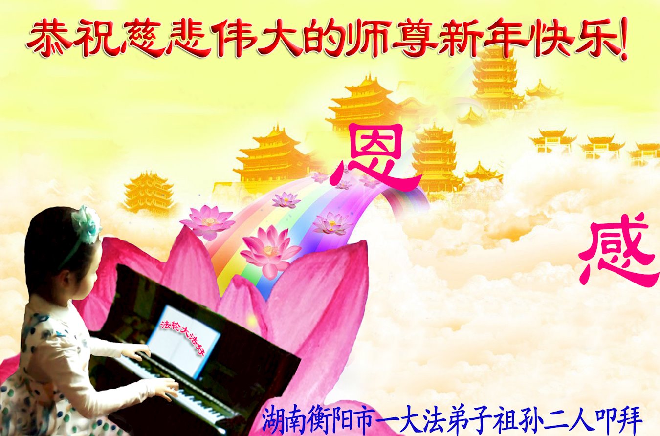 跪谢师尊救度之恩! 湖南衡阳市祖孙二人大法弟子恭祝师尊新年快乐!