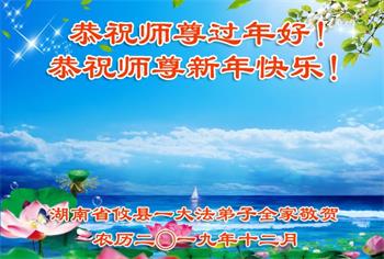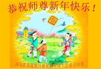 师父:沅江全体大法弟子给您拜年了!沅江学员由衷感念师父的谆谆教诲与慈悲救度之恩!恭祝师父新年快乐! 弟子来年一定多学法,做好三件事,救度更多的世人,跟师父回家。 湖南省株洲市攸县一大法弟子全家恭祝慈悲伟大师尊过年好!新年快乐!