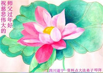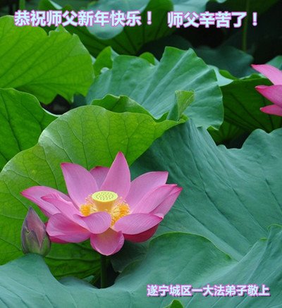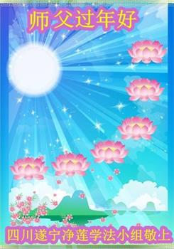 四川遂宁市城区一大法弟子向慈悲伟大的师父新年问好! 师父好!师父辛苦了! 四川遂宁市轻舟学法小组全体大法弟子向慈悲伟大的师父新年问好!