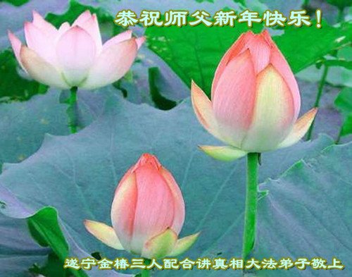 四川遂宁市金梅一大法弟子向慈悲伟大的师父新年问好! 师父好!师父辛苦了!感恩师父慈悲苦度! 二零二零年一月十五日 四川遂宁市金椿一大法弟子向慈悲伟大的师父新年问好!