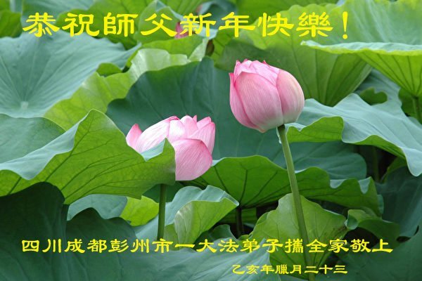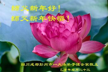 四川省成都市彭州市一大法弟子携全家恭祝师父新年快乐!