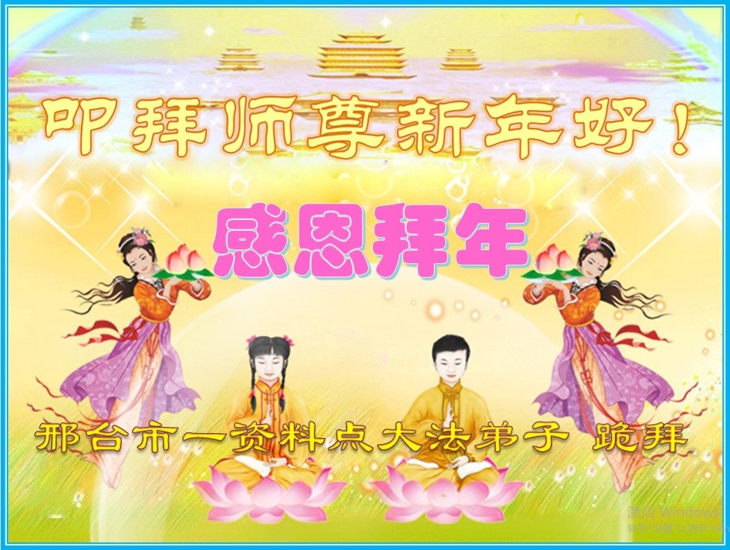 在新的一年到来之际,向伟大的师父拜年,祝师父新年快乐!感谢师父的慈悲苦度!时时刻刻修心性,圆容好家庭,随师父回家。 河北省衡水市景县龙华一大法弟子恭祝师尊新年快乐!