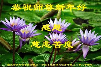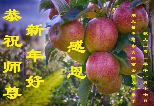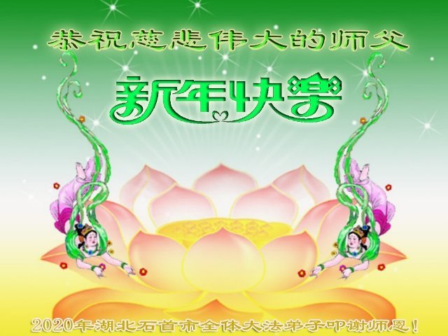 师父,您的慈悲天高地厚,无法用人间语言表达感恩之心,唯有做好三件事,精進实修,才不负师恩。 湖北浠水大法弟子恭祝慈悲伟大的师父新年快乐!