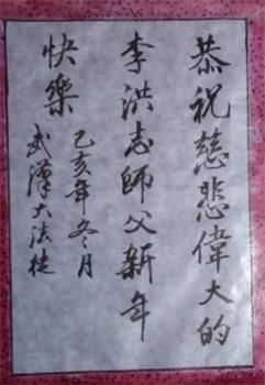 师父,谢谢您的慈悲苦度!我们学法小组在新的一年里,一定共同精進前程光明,完成历史使命。 湖北省武汉大法弟子全家恭祝师尊过年好!