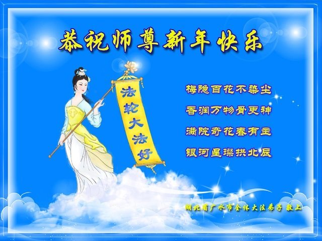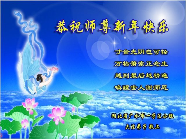 感恩师父!感恩大法!我们一定会做好大法弟子应该做的三件事,尽自己所能达到法的标准和要求,争取救度更多的众生。 湖北天门市全体城乡大法弟子恭祝师父新年快乐!