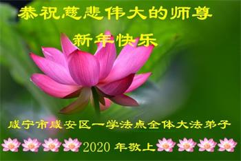 感恩师父!感恩大法!师父对我们的慈悲厚爱无法用语言表达。我们一定在这值千金、值万金的时刻,做好大法弟子应该做好的三件事,学好法,向内修,圆容整体,协调配合好,抓紧救度众生。 湖北省咸宁市咸安区一学法点全体大法弟子恭祝师父过年好!