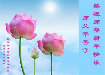 四川遂宁市一大法弟子及家人祝师父新年快乐!