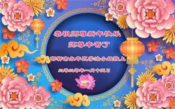【明慧网二零二零年一月二十四日】 河北省邯郸市永年区一学法小组大法弟子恭祝师尊新年快乐!
