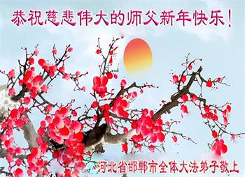 恭祝师尊新年快乐!感恩师父慈悲苦度!弟子给师尊拜年。 河北省邯郸市全体大法弟子恭祝慈悲伟大的师父新年快乐!