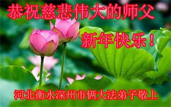 师父您好!恭祝师父新年快乐! 弟子无法用语言感恩师父的慈悲苦度,在这里以恭敬喜悦的心情向伟大的师父拜年,法轮大法好,真善忍好。 河北省曲周县南里岳乡大法弟子敬拜 河北省衡水市深州市一大法弟子恭祝师尊新年快乐!