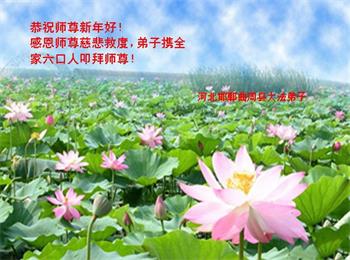 恭祝师尊新年好!感恩师父慈悲救度!弟子给师尊拜年。 河北邯郸曲周县一大法弟子携全家恭祝师尊新年好!叩拜师尊!